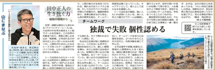 上毛新聞に『山にまなぶ/田中正人の生き抜く力』が連載されます。掲載は第4木曜日。4月23日は第1回 ~極限の現場から~① です。